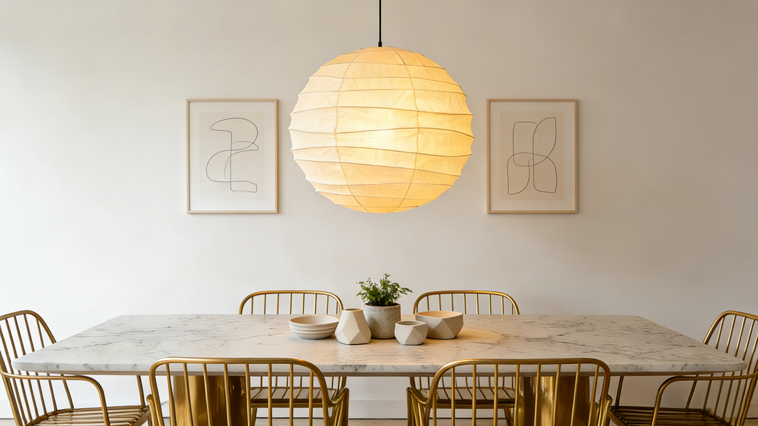 The Sphere Akari 100D Pendant Light is a magnificent lighting fixture that brings a sense of calm and beauty to any large space. Designed by Isamu Noguchi, this pendant light boasts a grand spherical form, crafted meticulously from Japanese washi paper and bamboo. Its expansive shade produces a gentle, diffused light that bathes the room in a warm, ambient glow. Perfect for grand living rooms, open-plan spaces, or high-ceilinged areas, the Akari 100D Pendant Light is a statement piece that combines traditional craftsmanship with contemporary elegance.