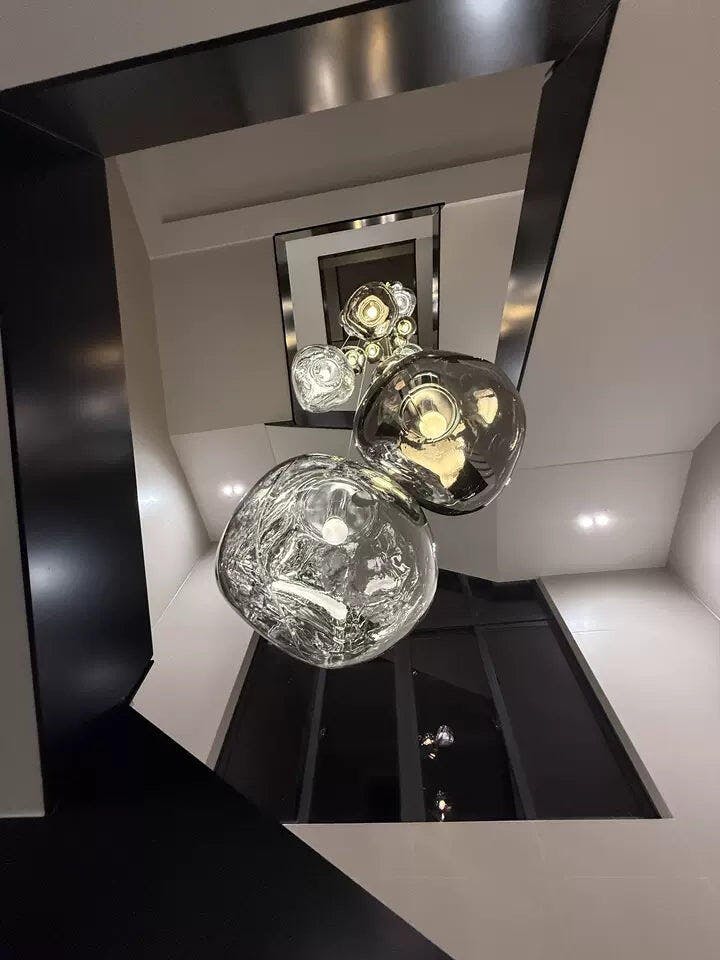 This 8-light multi-tier cloud glass pendant light brings a chic, postmodern style to your breakfast nook, bar table, bedroom, or kitchen. It's made from premium iron in a golden finish...
