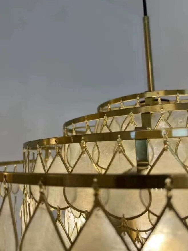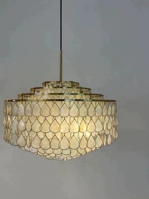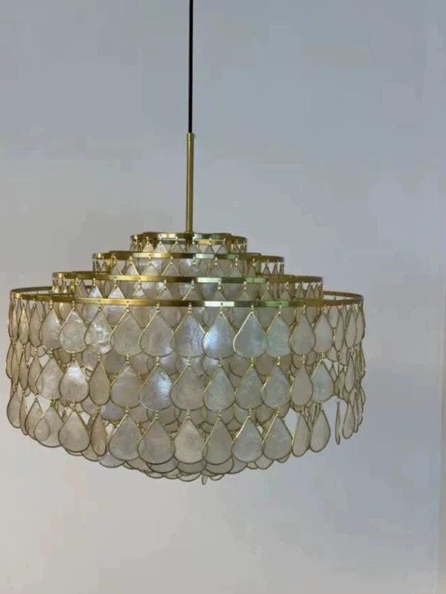 Teardrop Capiz Chandelier, a unique style that seems to glow from within. The shells are handcrafted by artisans in Capiz, Philippines, and the shells are harvested from local windowpane oysters....