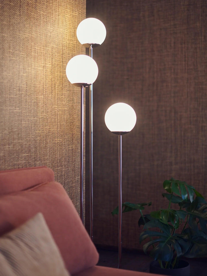 A stylish glass and chrome lamp from the SIMRISHAMN series. Modern lighting for an entire home that creates a nice atmosphere. Use it as a standalone eye-catcher or mix it with other lamps in the series.