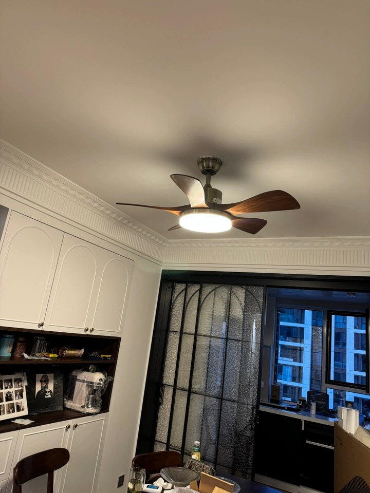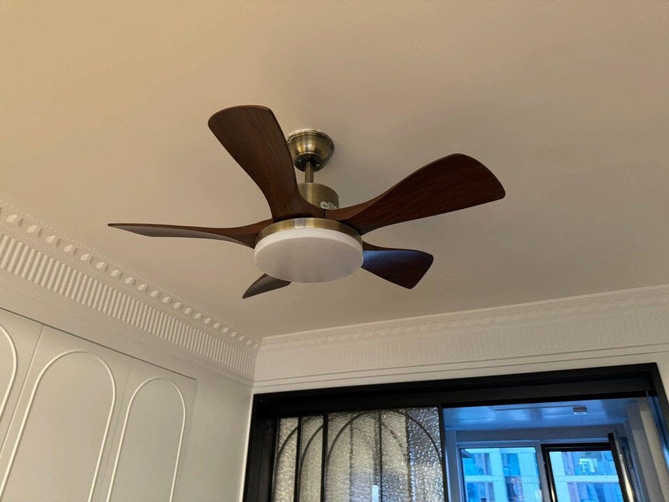 Material: Metal frame, Wooden blades, acrylic shade, pure copper motor