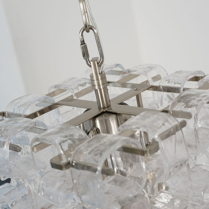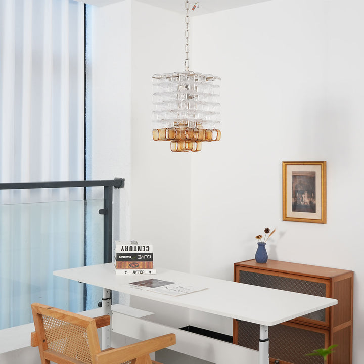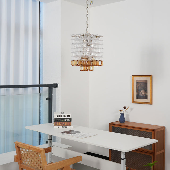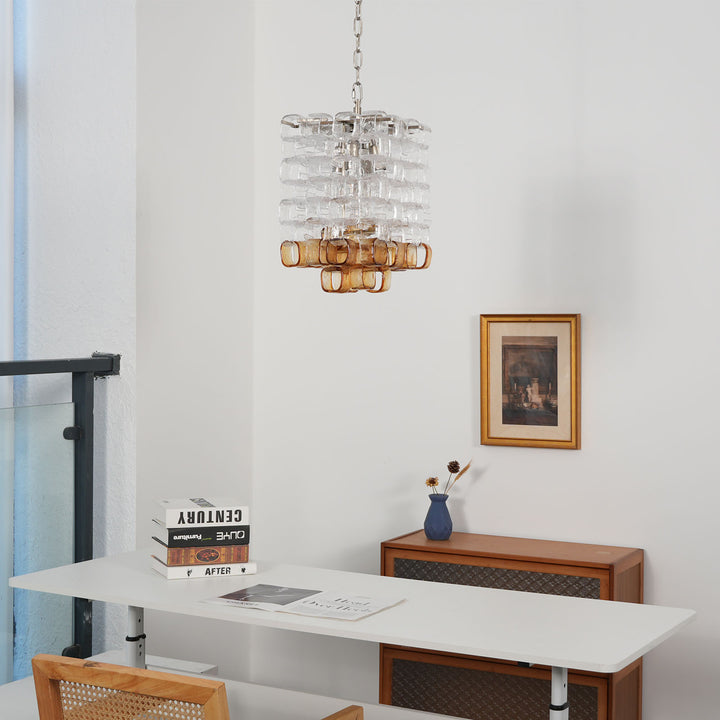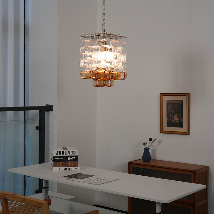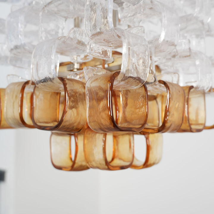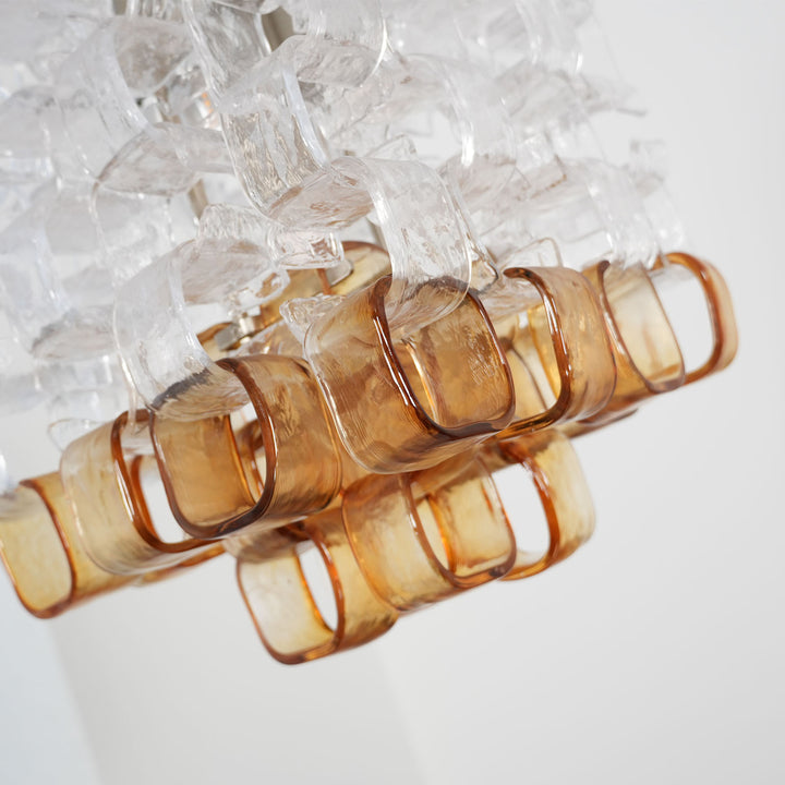 Illuminate your space with the stunning Lce Cubes Interlocking Murano Chandelier. Made with amber and transparent Murano glass, this chandelier creates a beautiful display of light and color. Its customizable design allows for a unique and versatile look in any room. Experience the beauty and craftsmanship of this intricate piece for yourself!