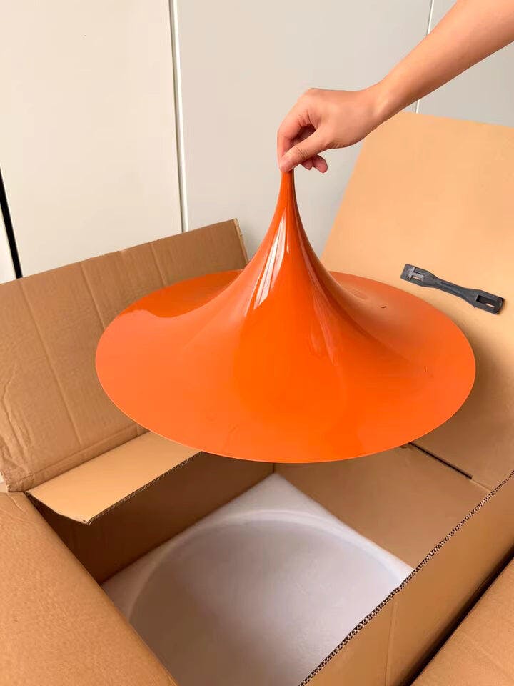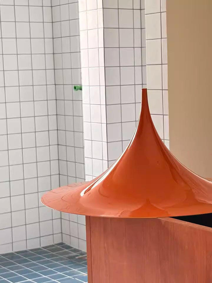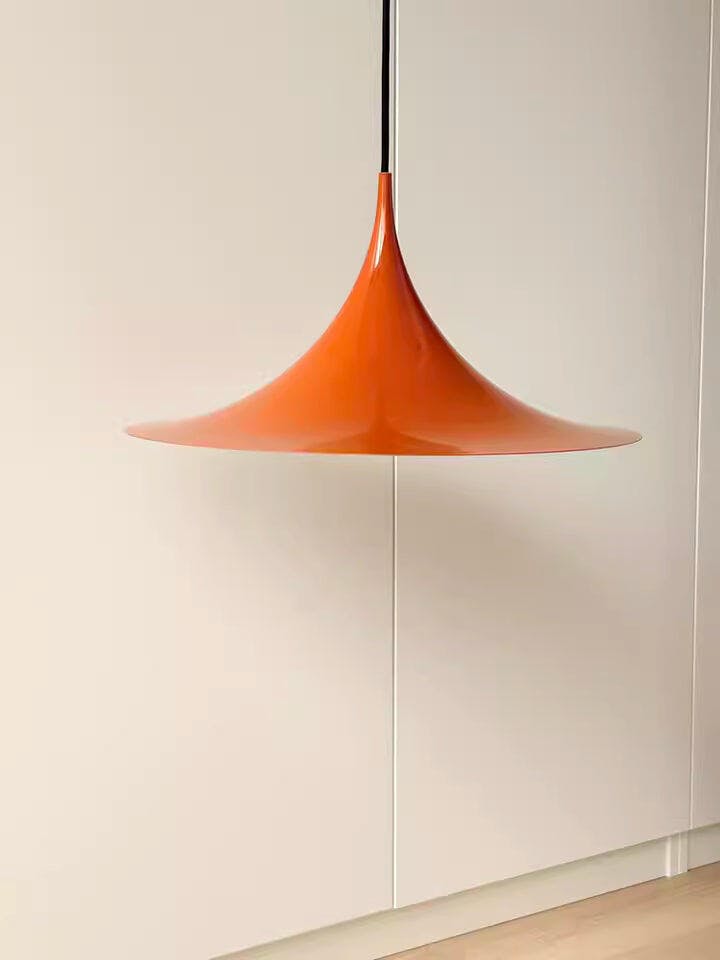 Semi is a unique pendant lamp, based on two quarter-circles put together, back-to-back. With its distinctive arch-shaped, enameled metal shade, lightness of form and unique, timeless design, the elegant Semi lamp achieved great success in the 1980's and became, at that time, the best-selling Danish design, gaining worldwide recognition and iconic status. It´s distinctive arch-shaped shade in lacquered, spun aluminum creates a diffused, cone-shaped light, ideal over a dining table or kitchen work surface.