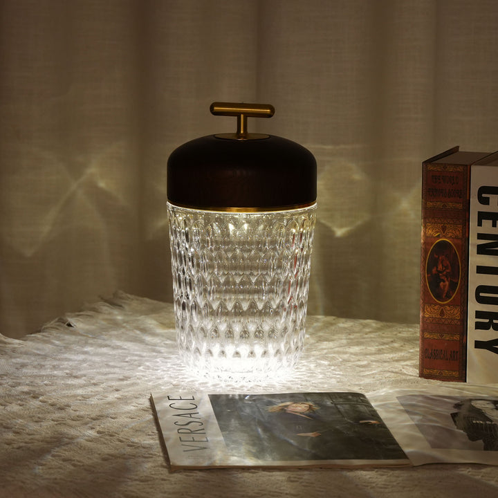 Metavaya Table lamp Dia 15cm x H 29cm / Gold & Walnut color / Touch Crystal Folia Portable Lamp 662668874685 M2023061801-2