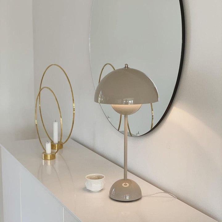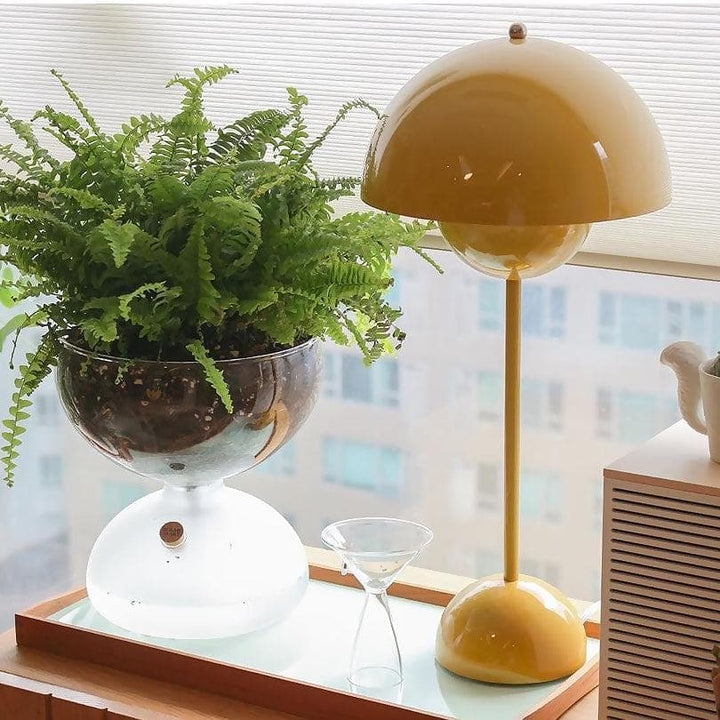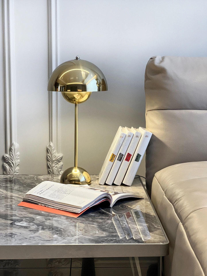 Semi-Circle Bedroom table lamp is a design classic from 1969, The lamp was inspired by peace, love and age of Flower Power, and it became a true design icon soon after its launch. The silhouette of Flowerpot is created by two hemispheres, which let the light reflect down in a soft, pleasant manner.
